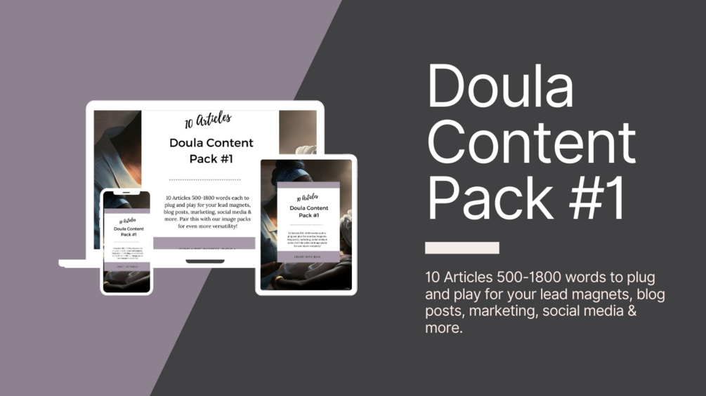 Save your precious time with this content pack! This is perfect for the new or established doula looking to post on social media, blog or website with more intention and frequency. There's 10 unique pieces of content that you can rebrand into your own by just adding your own voice. Never stare at a blank page again when you're trying to come up with what to say!